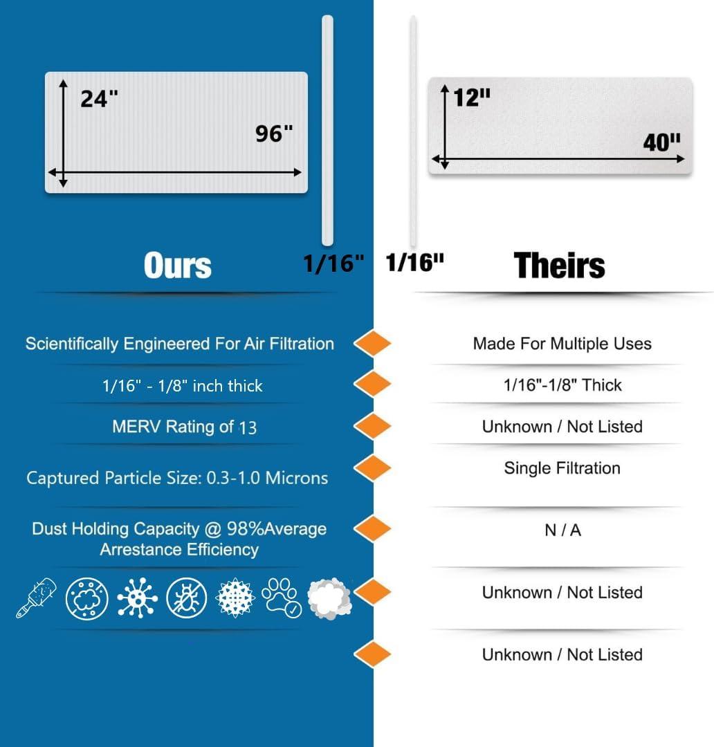 Enjoy peace of mind: Whether you're concerned about unwanted air particles in your home or office, the MERV 13 filter fabric offers a reliable solution backed by industry-leading filtration technology, providing peace of mind and confidence in your indoor air quality. With their proven effectiveness and value for money, MERV 13 filters are a smart choice for anyone seeking cleaner, healthier air in their home or business.