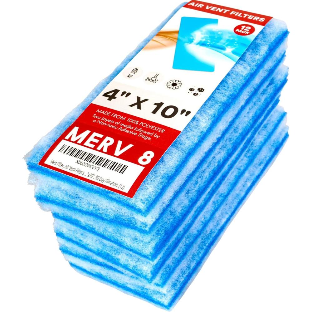 PREMIUM MERV 8 ELECTROSTATIC TRIPLE FILTRATION: Our air vent filters for home / register filters material are specifically engineered for your 4×12 air vent. They are engineered as vent filters for home, but can be used for many other purposes. They also prevent debris from falling into the ducts and guards against creepy crawlees travelling into your house from your air ducts.
