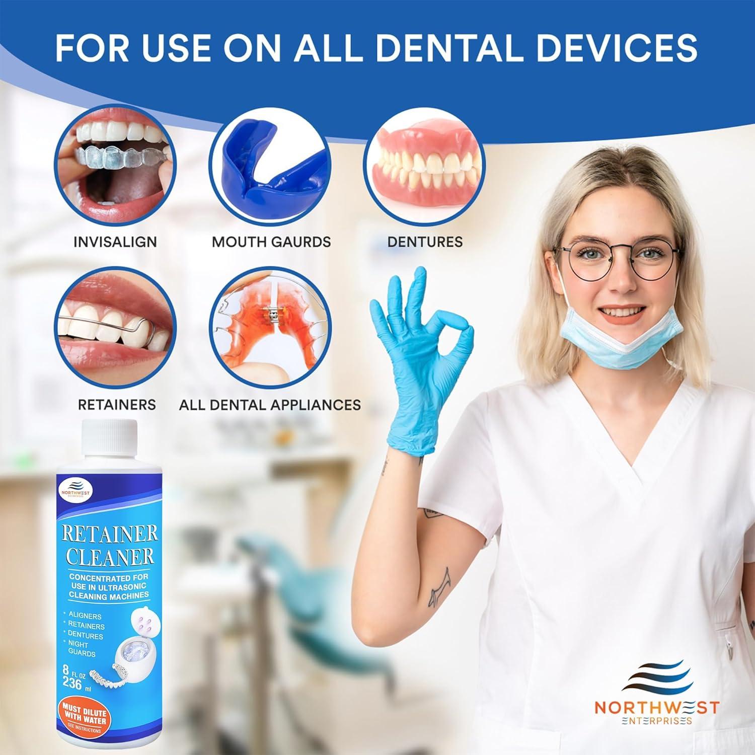 Comprehensive Dental Appliance Cleaning: This ultrasonic retainer cleaner solution is specifically engineered to impeccably clean a wide range of dental appliances. Our solution is tailored to provide professional grade cleaning without leaving the comfort of your home.